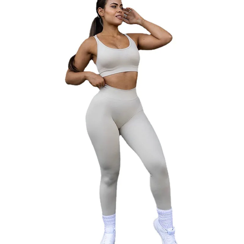 Women's Seamless Hip Pants Yoga Suit Solid Pattern Hanging Neck Bra for Sports Fitness Custom Logo Breathable Top for Gym Use