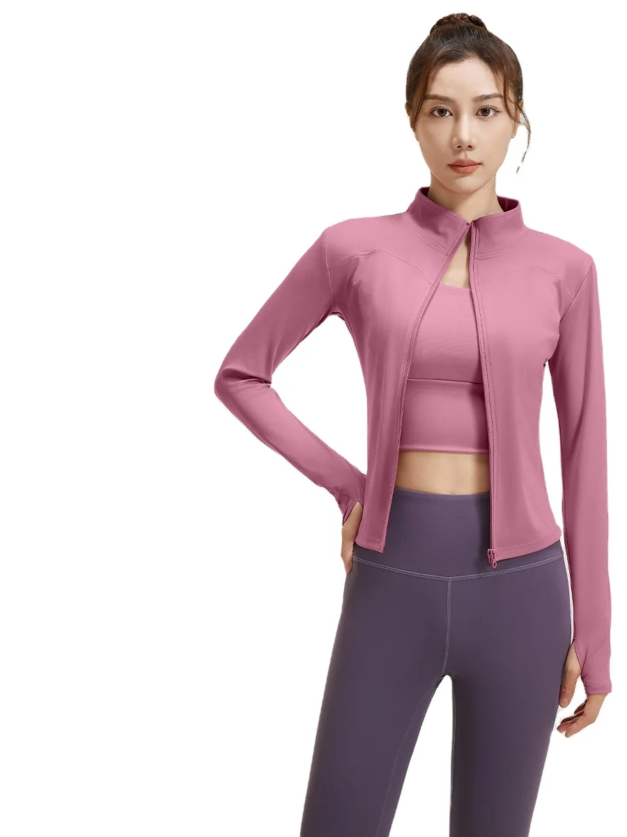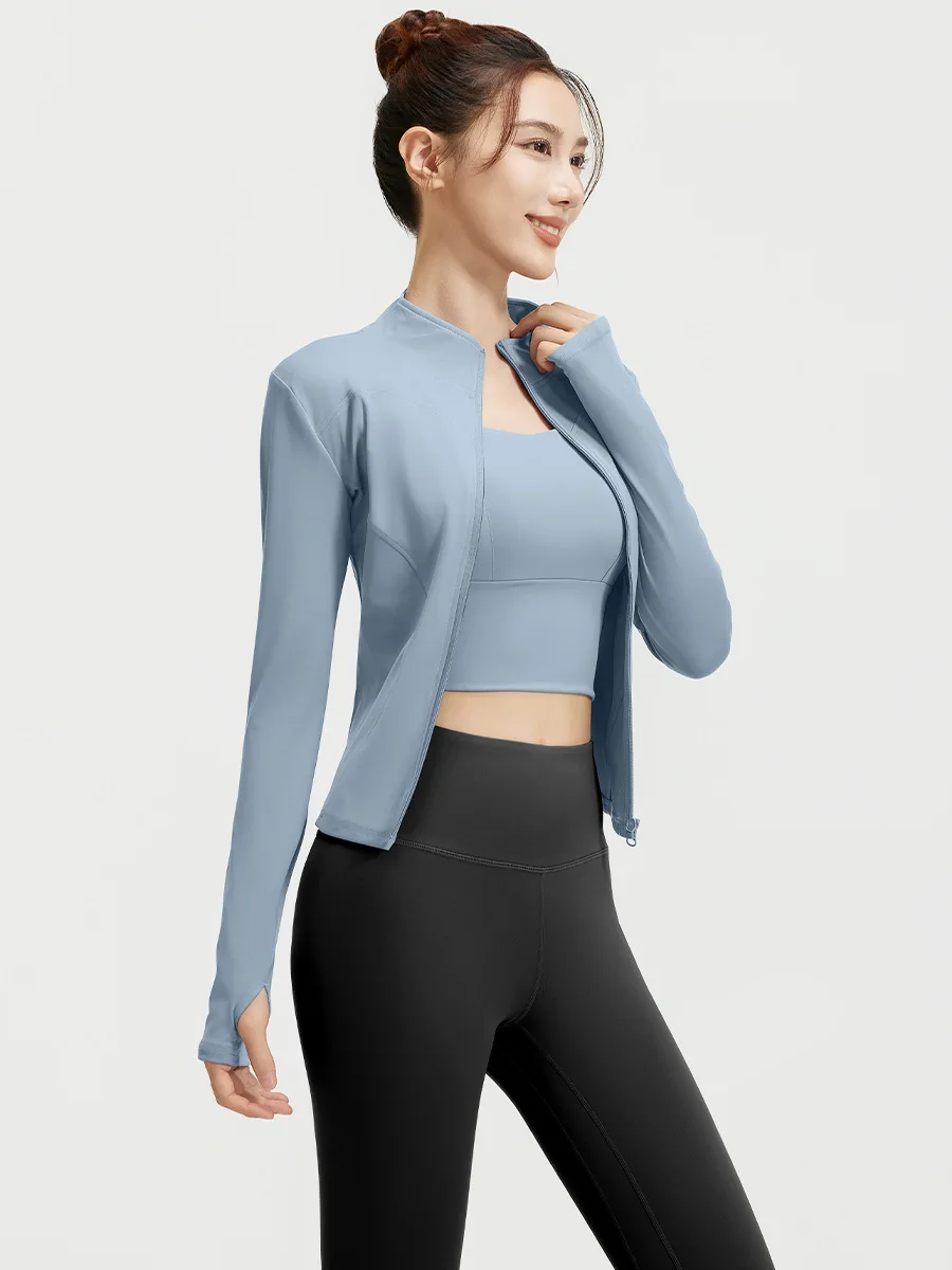 YISHENHON Custom Women's Yoga Jackets Thumb Hole Zipper Lightweight Fitness Sports Jackets Workout Yoga Clothing With Pocket