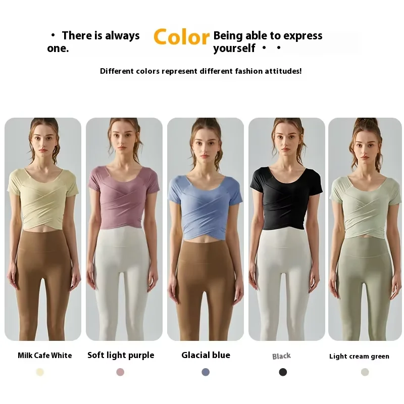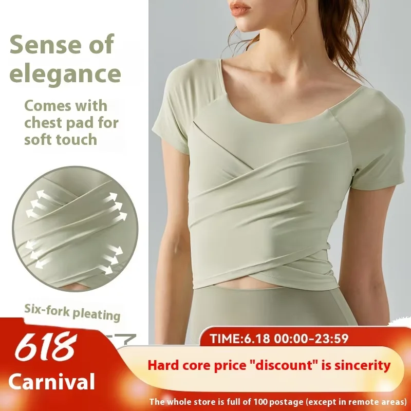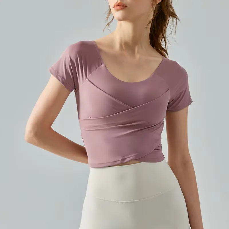 Yoga Top Sleeve Women's Cross Pleated Slim Fit Design Soft Breathable Fashion Exercise Yoga Sports Wear Seamless Yoga Top