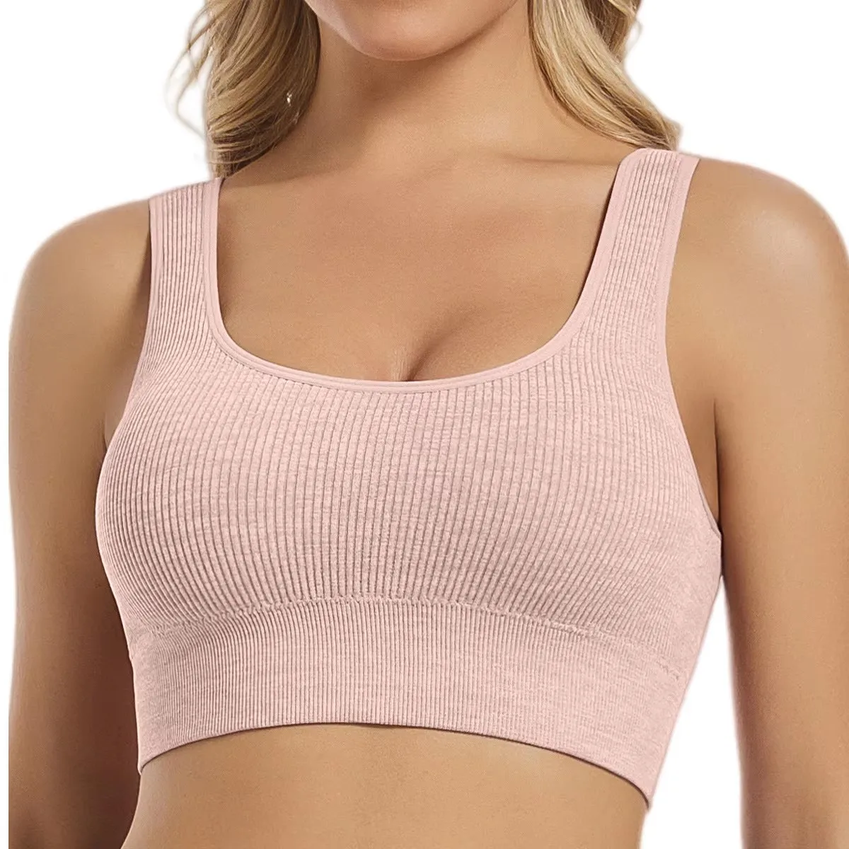 Seamless One-Piece Knitted Fitness Bra Strapless Wireless Design Padded Breathable Spandex Sweat-Wicking Sports Vest Active Yoga