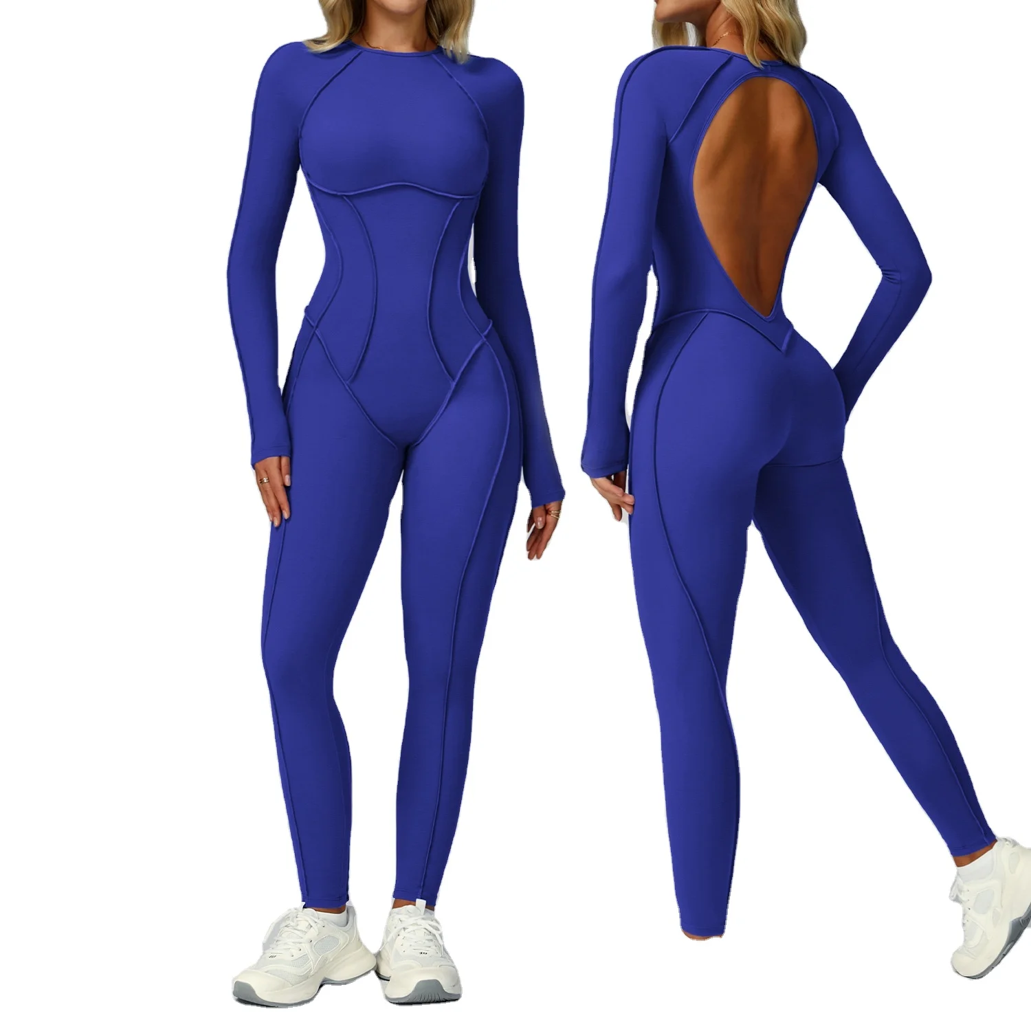 Cross-border Scrub Contrast Yoga Jumpsuit Viscose/Polyester Wrinkle-Resistant Seamless Spaghetti Strap Full Length Sports