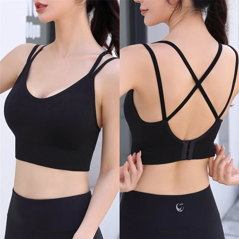High Strength Sports Bra Shockproof Fitness Vest Breathable Comfortable Back Underwear Adjustable Push-up Cup Print Spandex