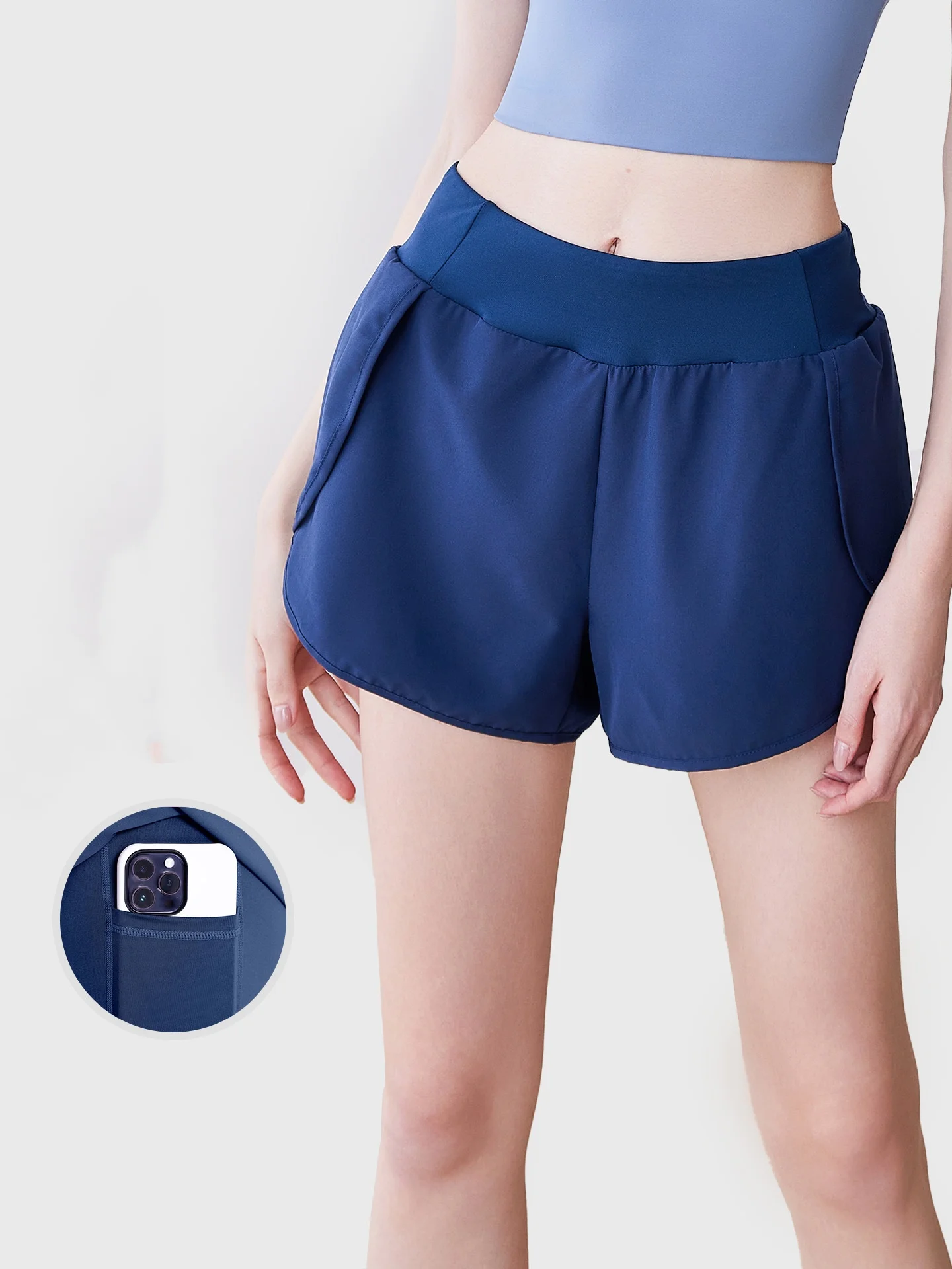 Sports Shorts Two-piece Quick-Dry Sports Shorts for Women Side Pockets and Anti-Revealing Design for Gym Yoga Sports Shorts