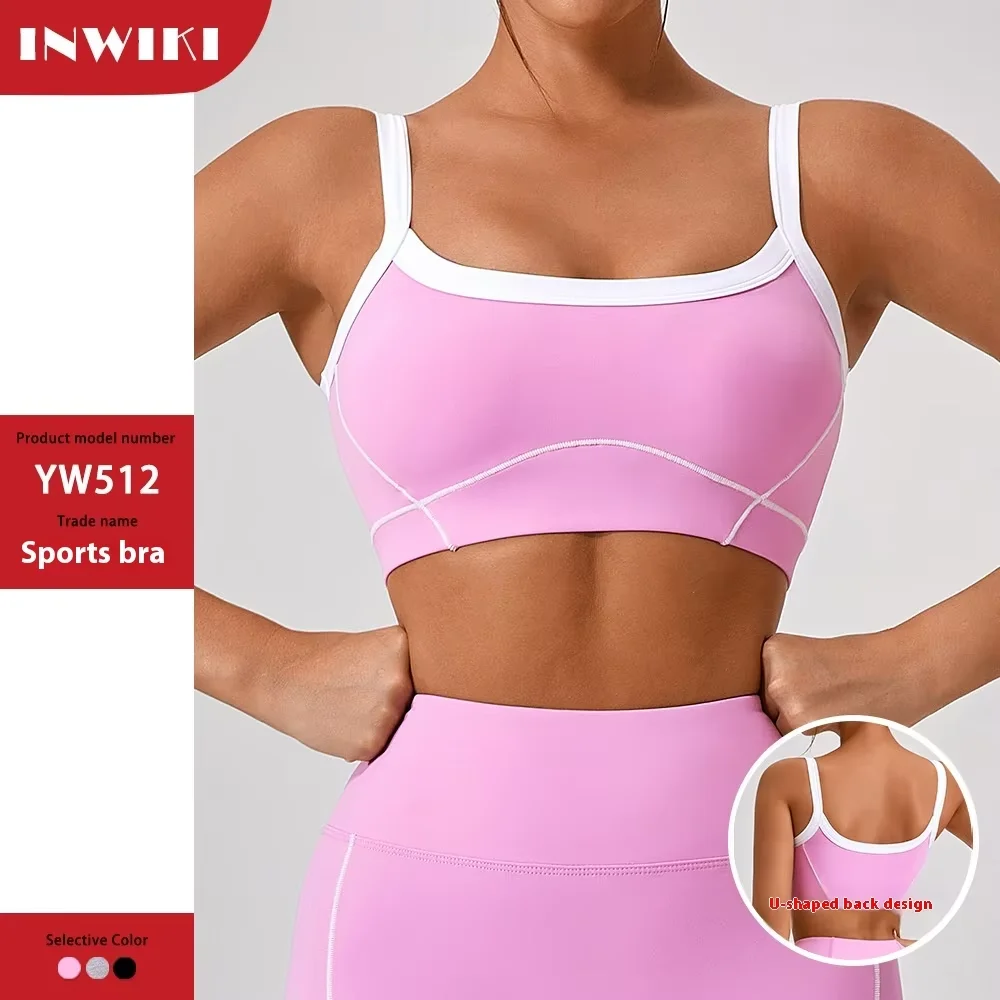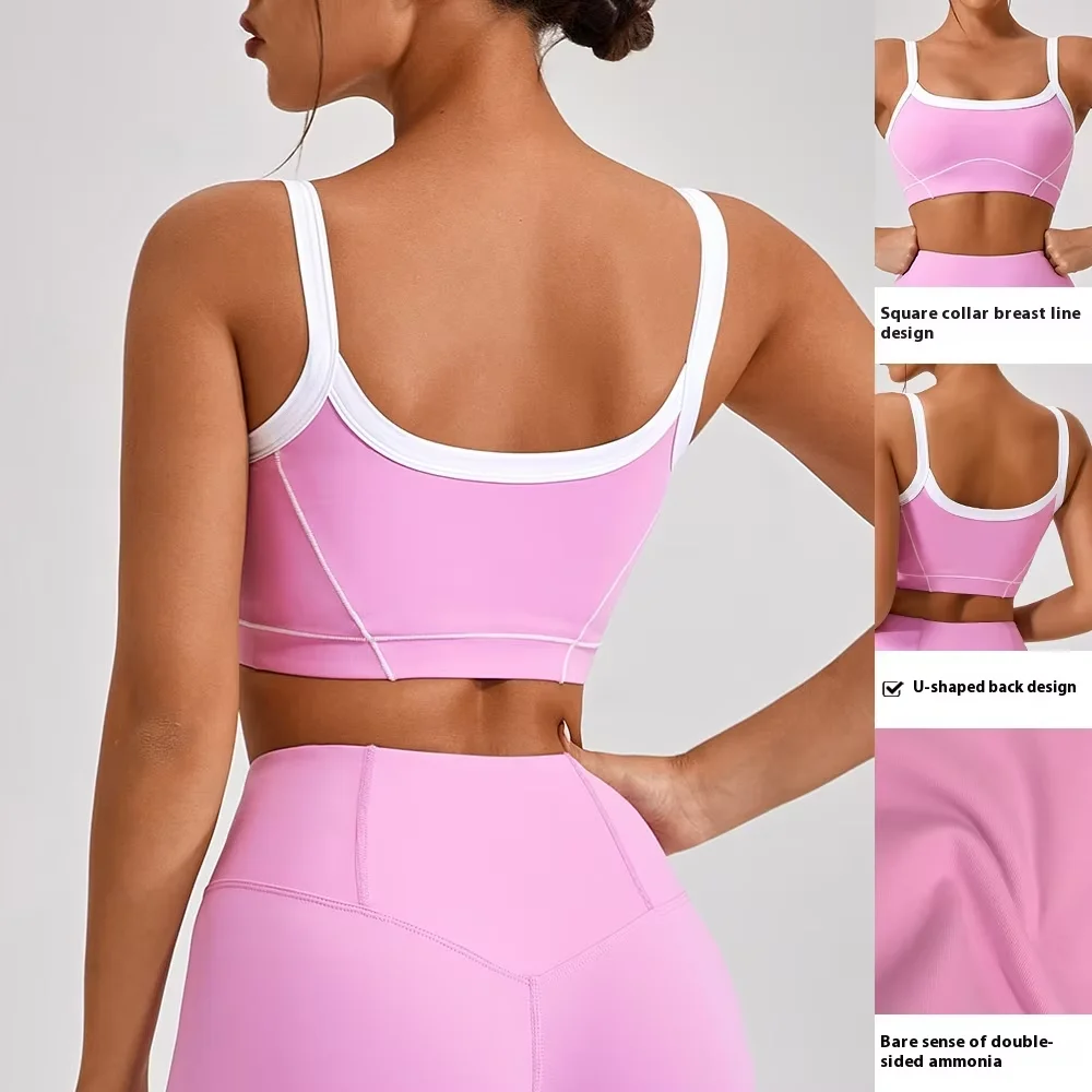 Women's Sports Bra Fashion with White Edge Trim, Naked Feel High-Strength Support Thin Strap Design for Outdoor Yoga Running Bra