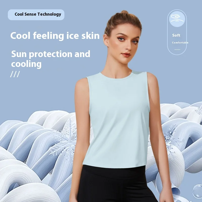 Ladies Ice Silk Bodybuilding Tank Top Ladies Summer Spring Fashion Cool Breathable Loose Blouse Women's Fitness Plus Size