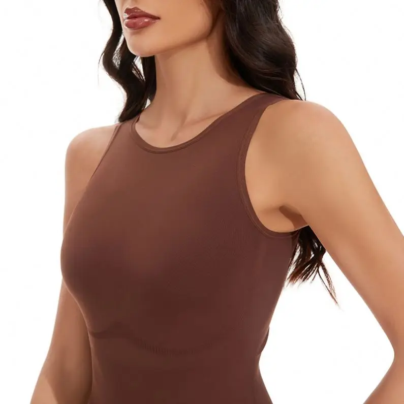 Popular Tight Belly Trimming Shapewear Fitted Waist Vest Solid Color Round Neck Jumpsuit Women's Underwear Plus Size Shapers