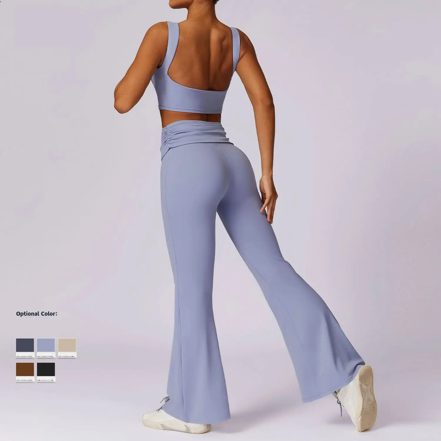 YISHENHON High Quality Gym Yoga Flare Leggings Hot Selling High-Waisted Wide Leg Pants for Women Solid Casual Sport Running