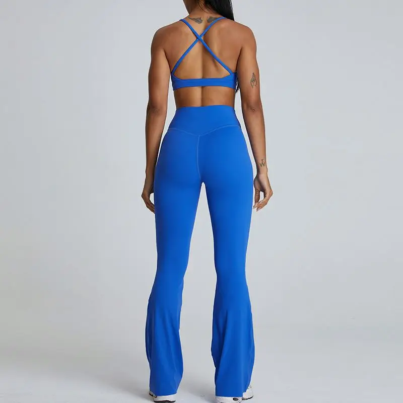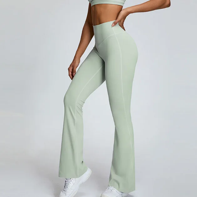 YISHENHON High Quality Gym Yoga Flare Leggings Hot Selling High-Waisted Wide Leg Pants for Women Solid Casual Sport Running
