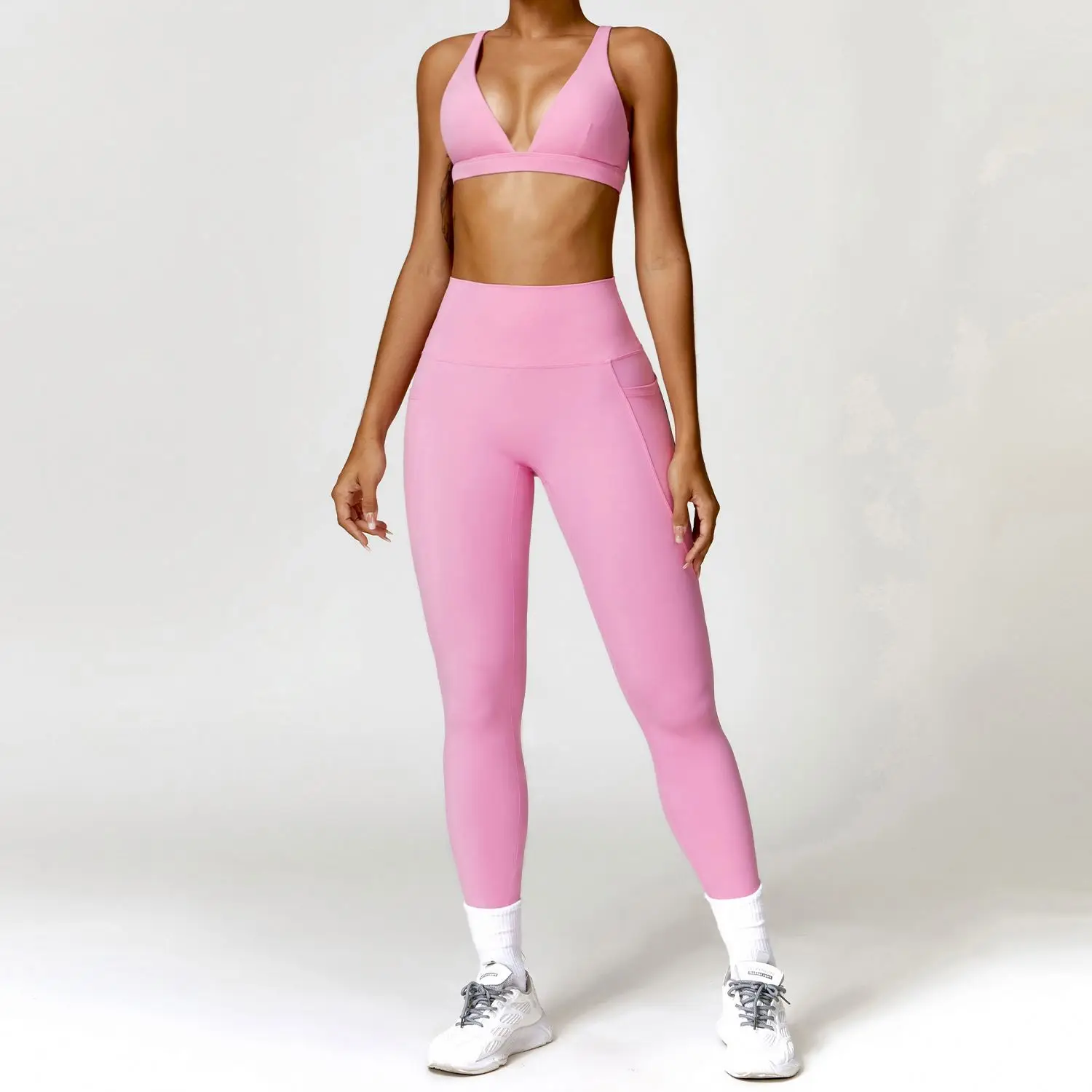 YISHENHON Custom Butt Lift Yoga Leggings for Women High Waist Sport Pants with Pockets Running Fitness Workout Gym Activewear