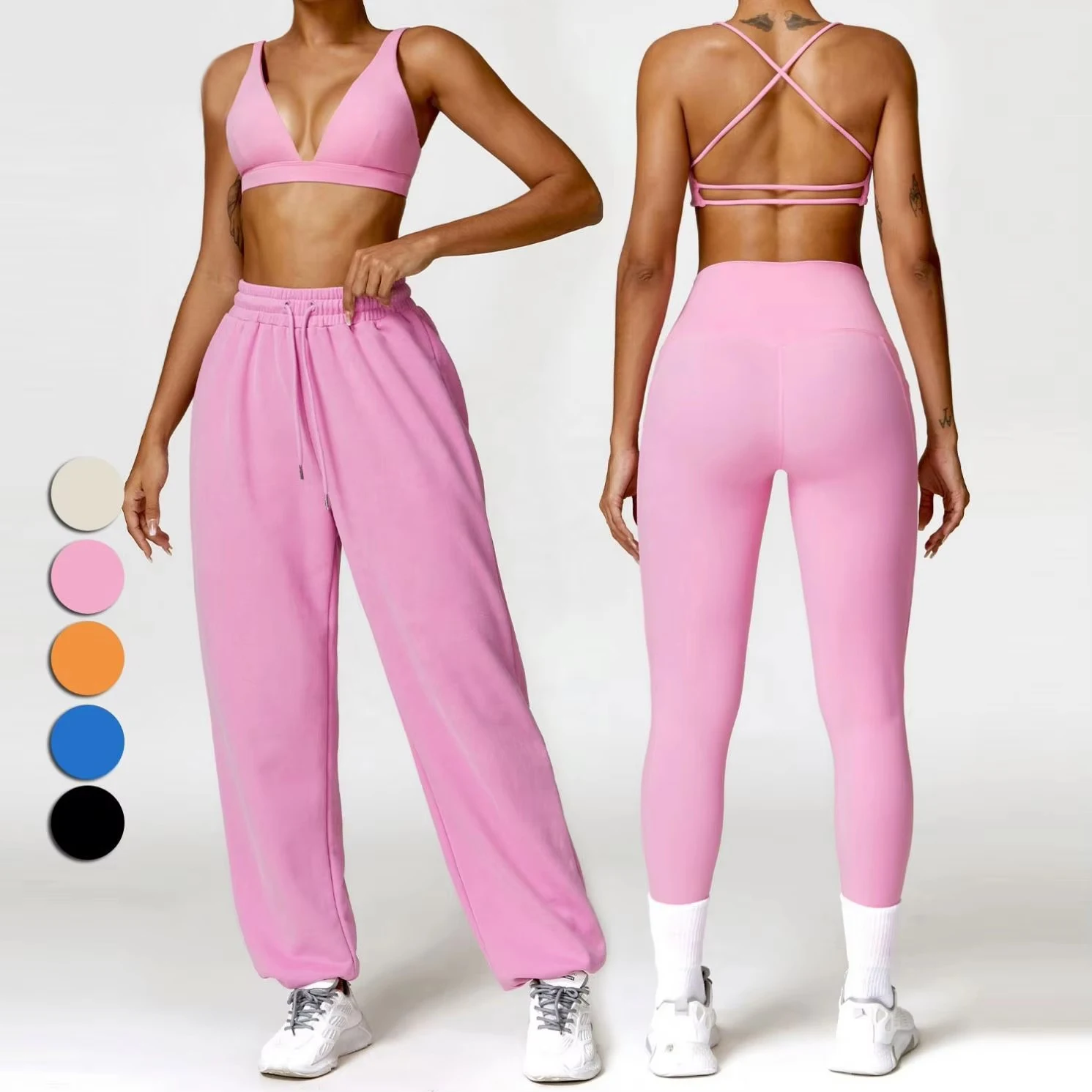 Custom Logo 4 Pieces Active Wear Set Athletic Sportswear Women Jogger Set Gym Fitness Yoga Sets
