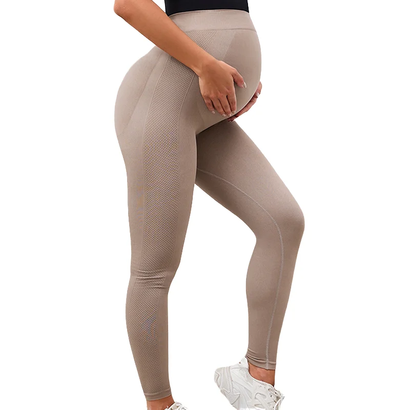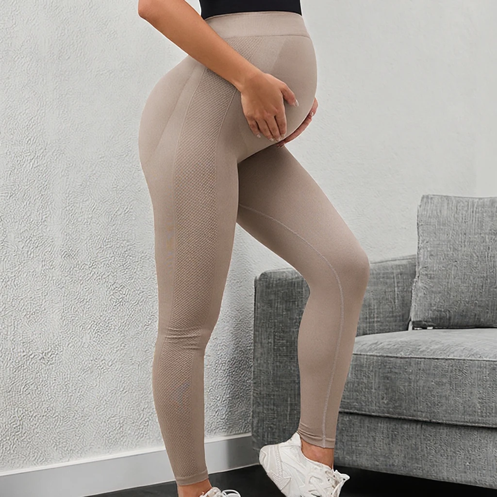 Seamless Lightweight Spandex/Nylon Maternity Leggings Custom High Waist Elastic Waist Loose Pants Solid Quick Dry Full