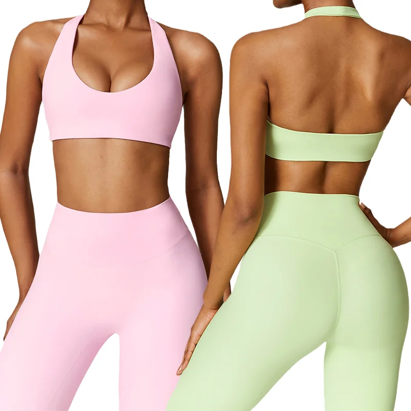 YISHENHON OEM/ODM Custom Workout Halter Scrunch Sports Bra Women Girls Stretchy Compression Quick Dry Padded Sexy Pants Polybag