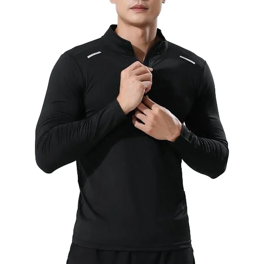 Men's Long Sleeve Sports Quarter Zip T-Shirt Lightweight Quick-Dry Polyester Custom Logo Workout