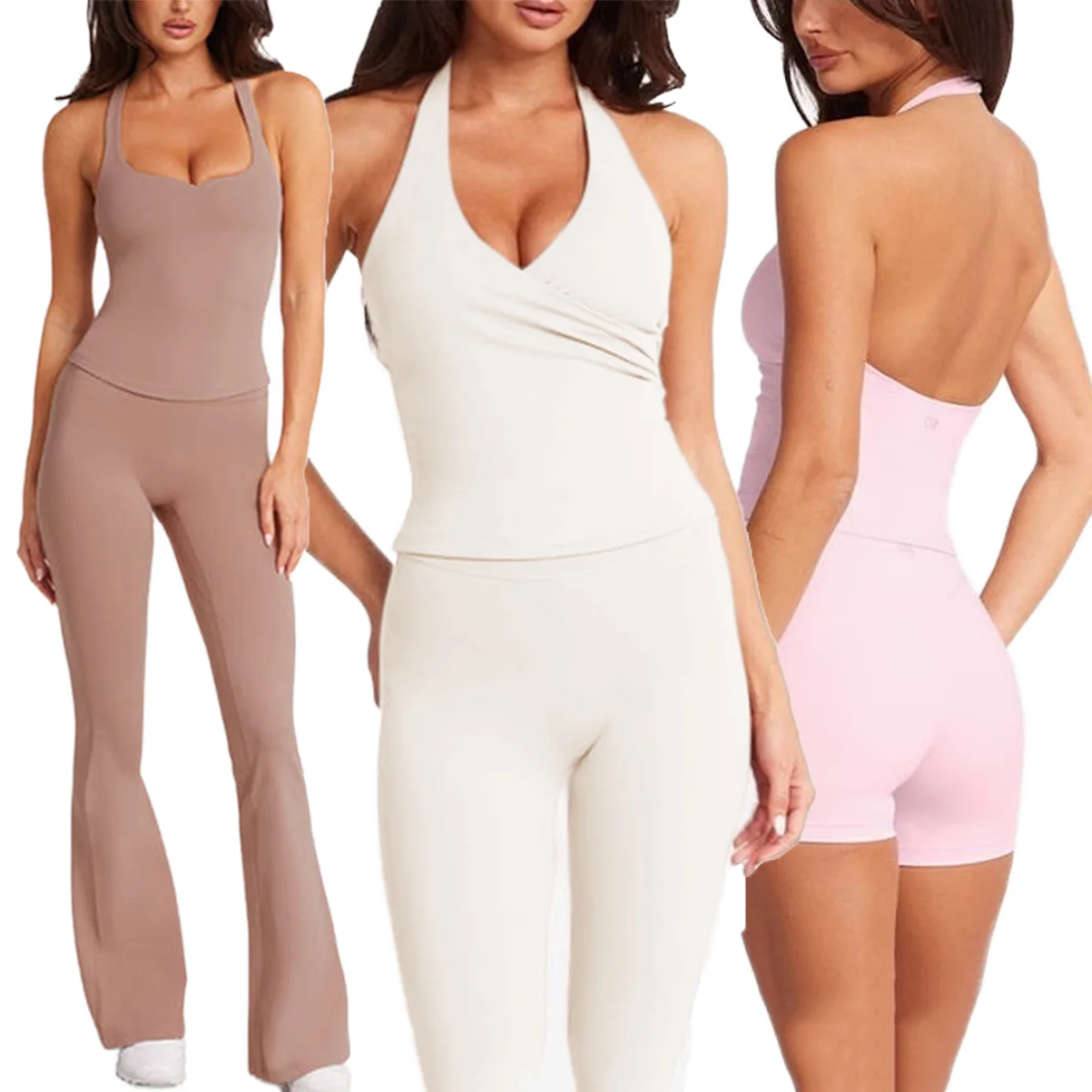 YISHENHON OEM/ODM Custom Workout Halter Scrunch Sports Bra Women Girls Stretchy Compression Quick Dry Padded Sexy Pants Polybag