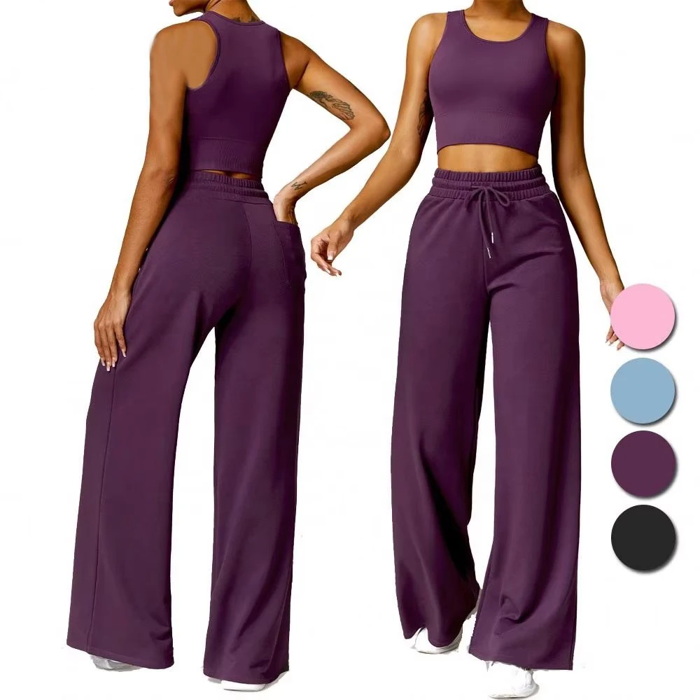 YISHENHON High Quality Gym Yoga Flare Leggings Hot Selling High-Waisted Wide Leg Pants for Women Solid Casual Sport Running