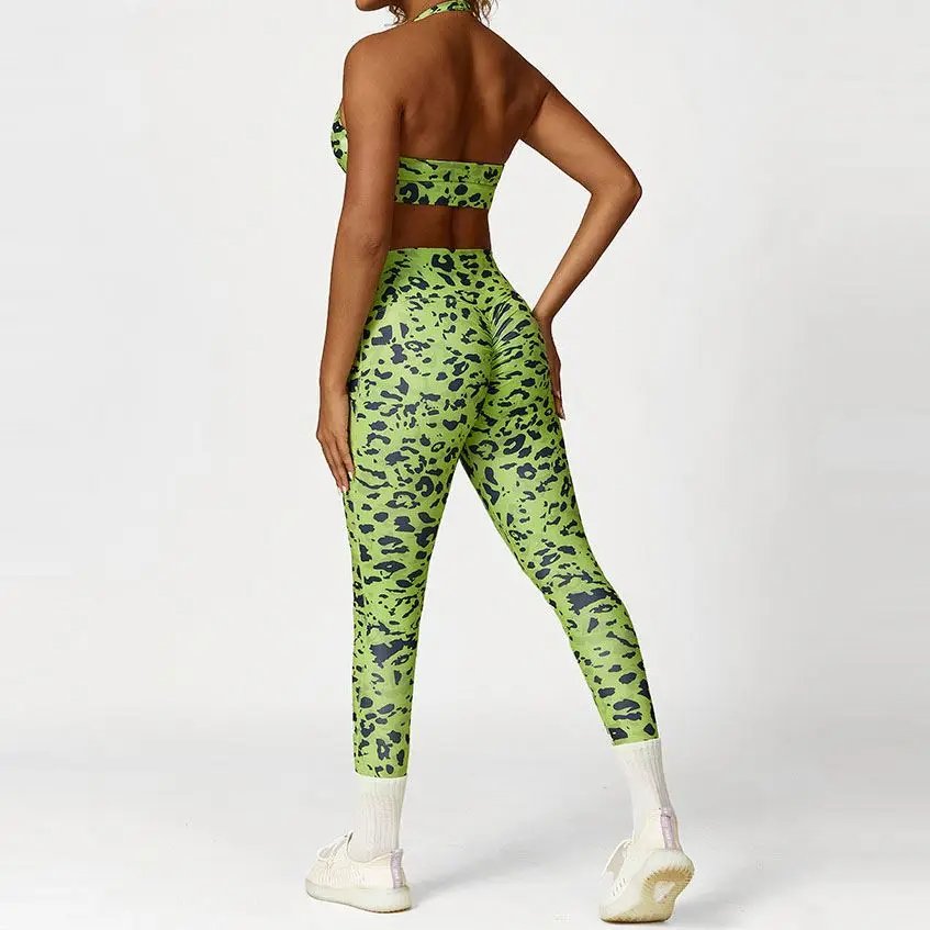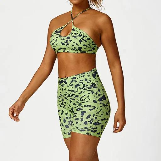4 Pcs Leopard Printed Sport Clothing Set Activewear Gym Fitness Women Sports Bra Shorts Leggings Yoga Set