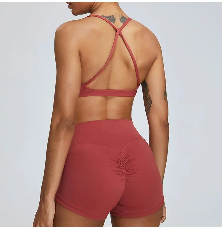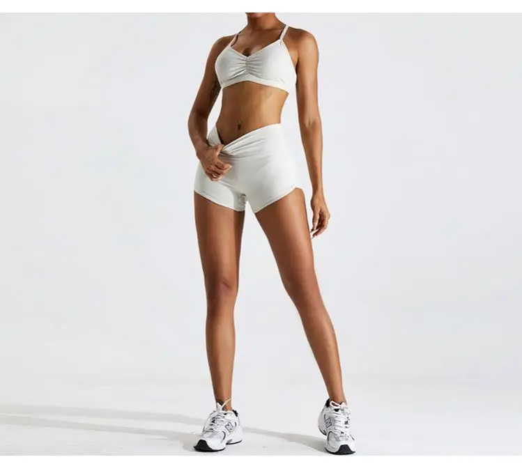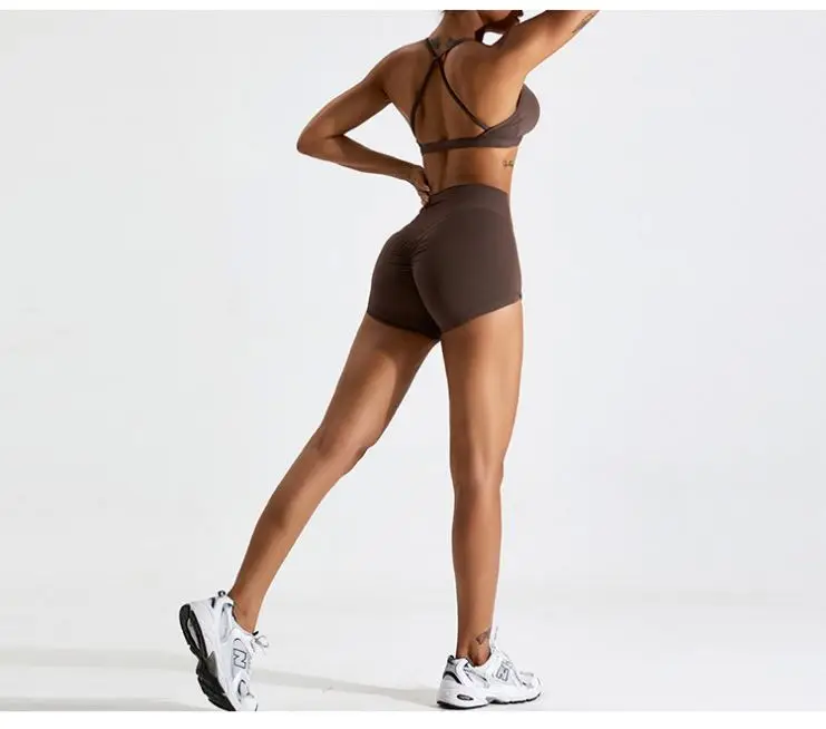 Custom Logo Active Wear Gym Sets Sports Wear 2pcs Scrunch Yoga Shorts Women Fitness Workout Shorts Sets