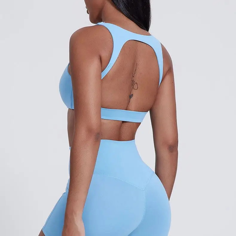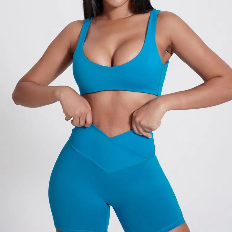 New Lady Fitness Workout Set Soft Nude Feeling Fabric Sports Bra Crop Top Yoga Shorts Leggings 3 Piece Set for Women