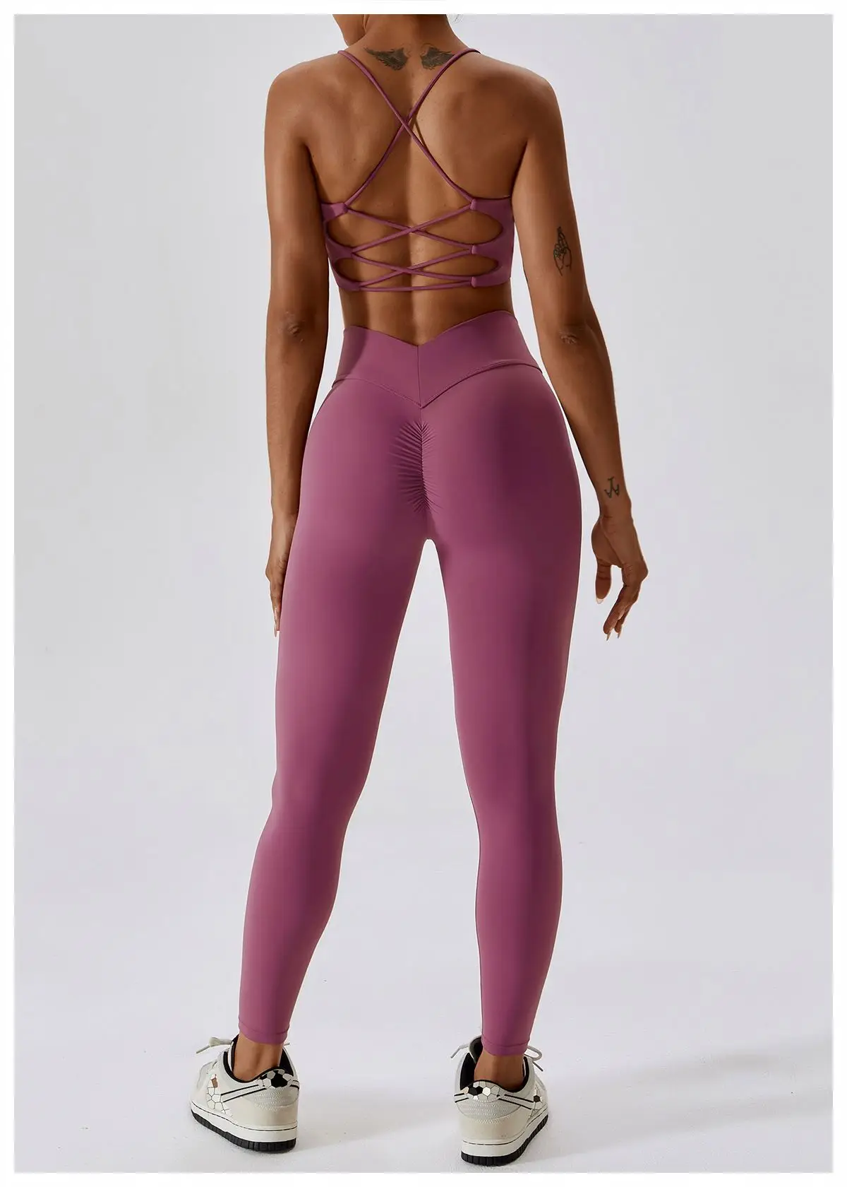 Women's Compression Workout Sets 3 Piece Fitness Yoga Set Scrunch Butt Legging Set