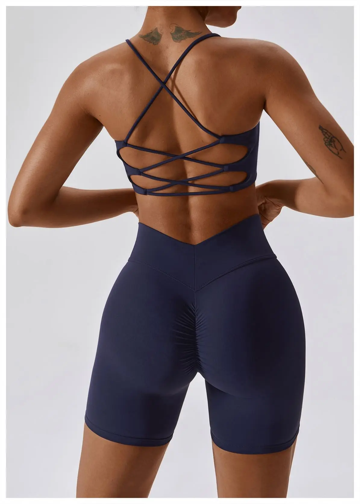 YISHENHON OEM/ODM Custom Workout Halter Scrunch Sports Bra Women Girls Stretchy Compression Quick Dry Padded Sexy Pants Polybag