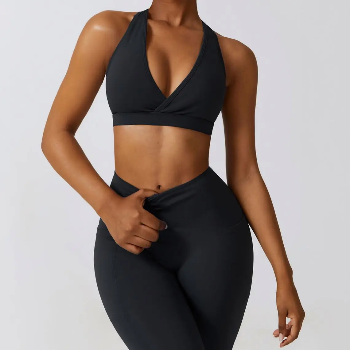 YISHENHON OEM/ODM Custom Workout Halter Scrunch Sports Bra Women Girls Stretchy Compression Quick Dry Padded Sexy Pants Polybag