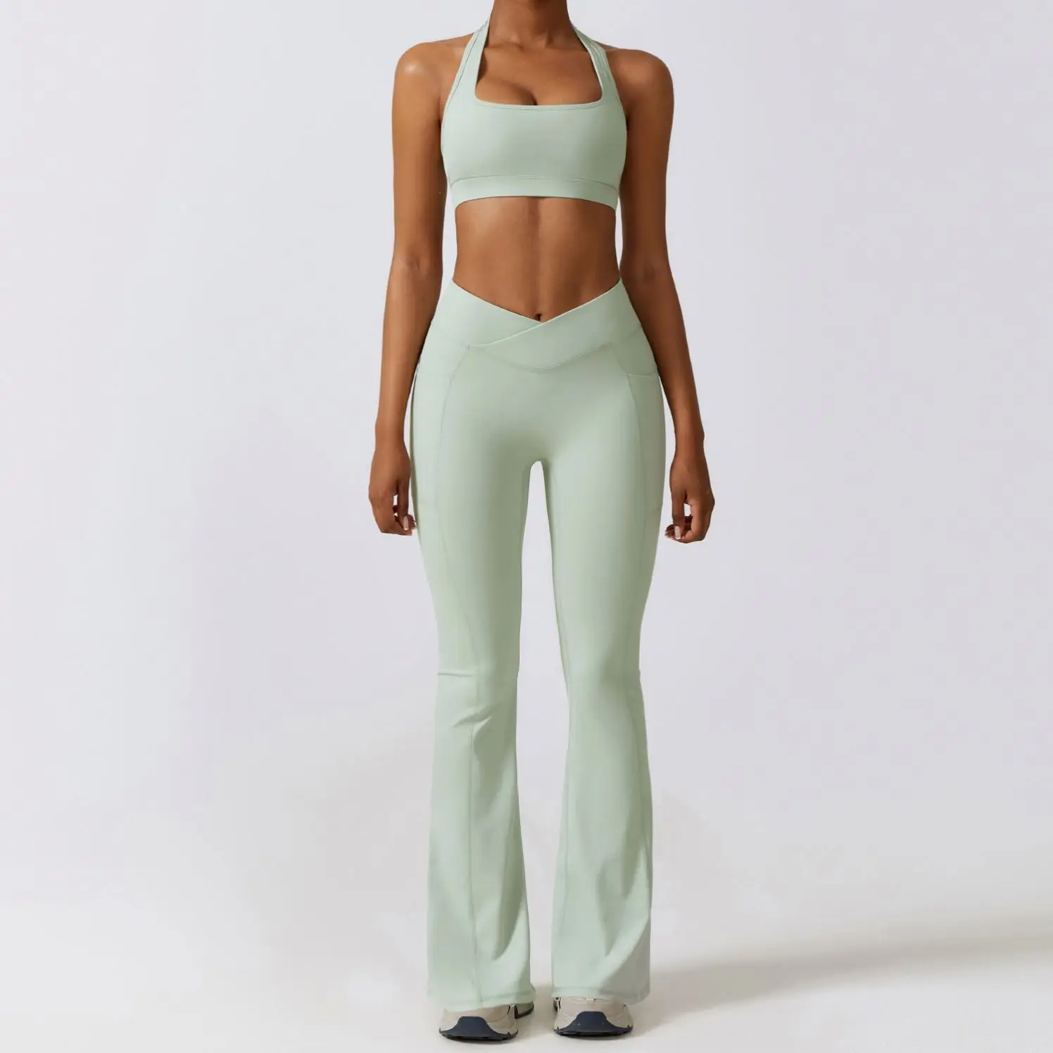 Custom Quick Dry Yoga Apparel Activewear Fitness Workout Clothing Halter Sports Bra Yoga Set Sportswear for Women