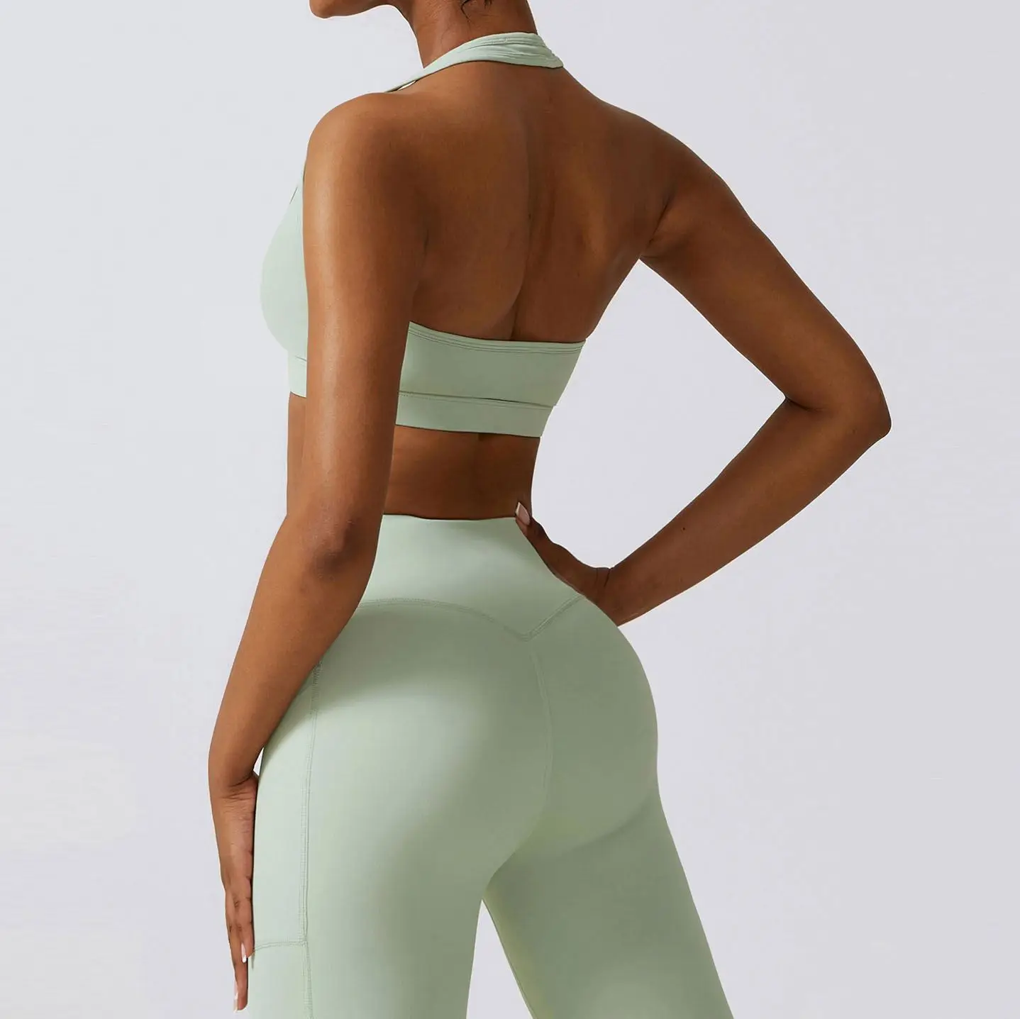 YISHENHON OEM/ODM Custom Workout Halter Scrunch Sports Bra Women Girls Stretchy Compression Quick Dry Padded Sexy Pants Polybag