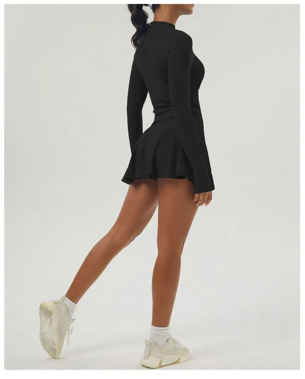 Wholesale Gym Wear Quick Dry Sports Dress Outdoor Golf Wear Long Sleeve Yoga Tennis Dress Tennis Skirt Set