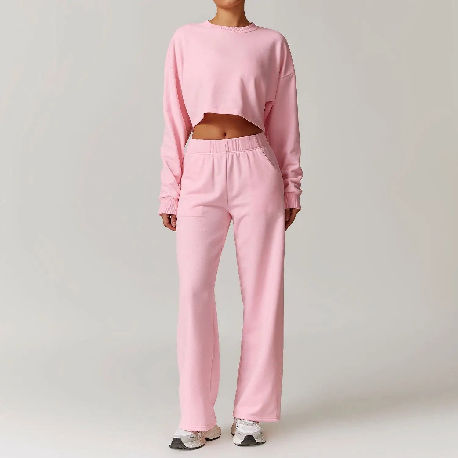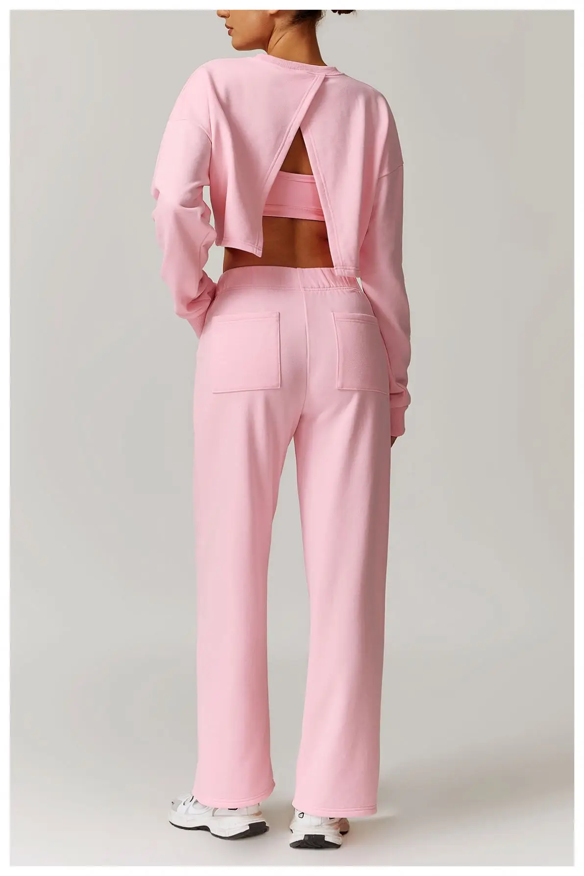 Women Soft Lightweight Flared Pants and Bra Set 5 Pcs Long Sleeve Workout Sets for Women Custom Sweatpants and Hoodie Set
