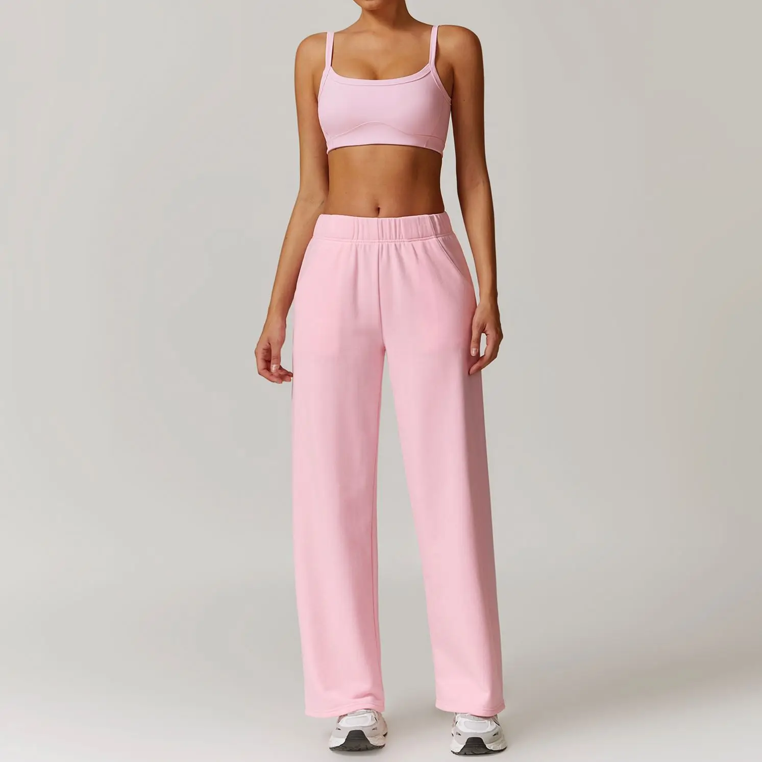 YISHENHON High Quality Gym Yoga Flare Leggings Hot Selling High-Waisted Wide Leg Pants for Women Solid Casual Sport Running