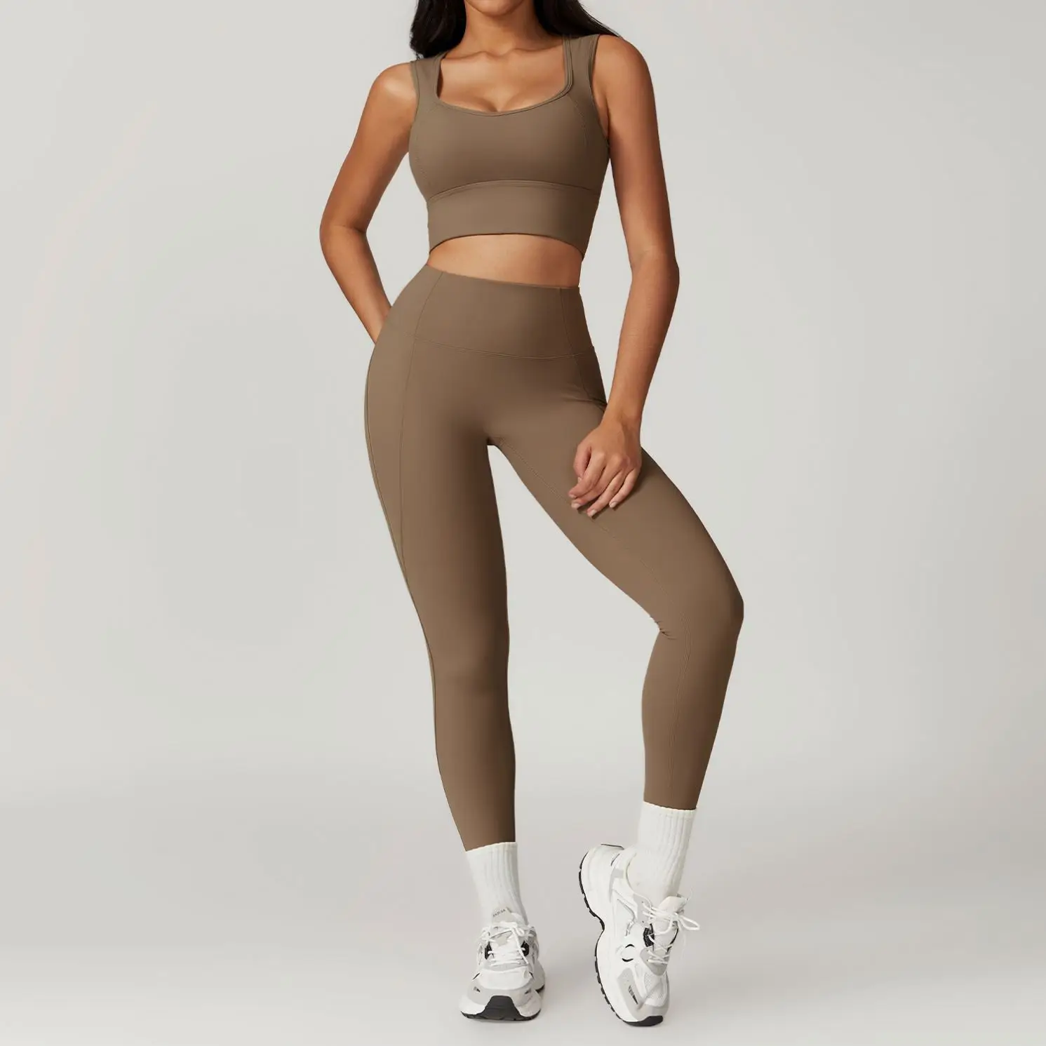 New Design Nylon Active Wear Gym Fitness Pants Sportswear High Waist Leggings Sports Bra Yoga Workout Sets for Women