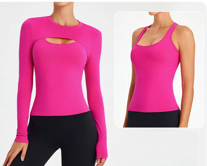 Front Hollow Out Yoga Top Custom 2 Pcs Boleros Seamless Fitness Wear Workout Activewear Long Sleeve Top
