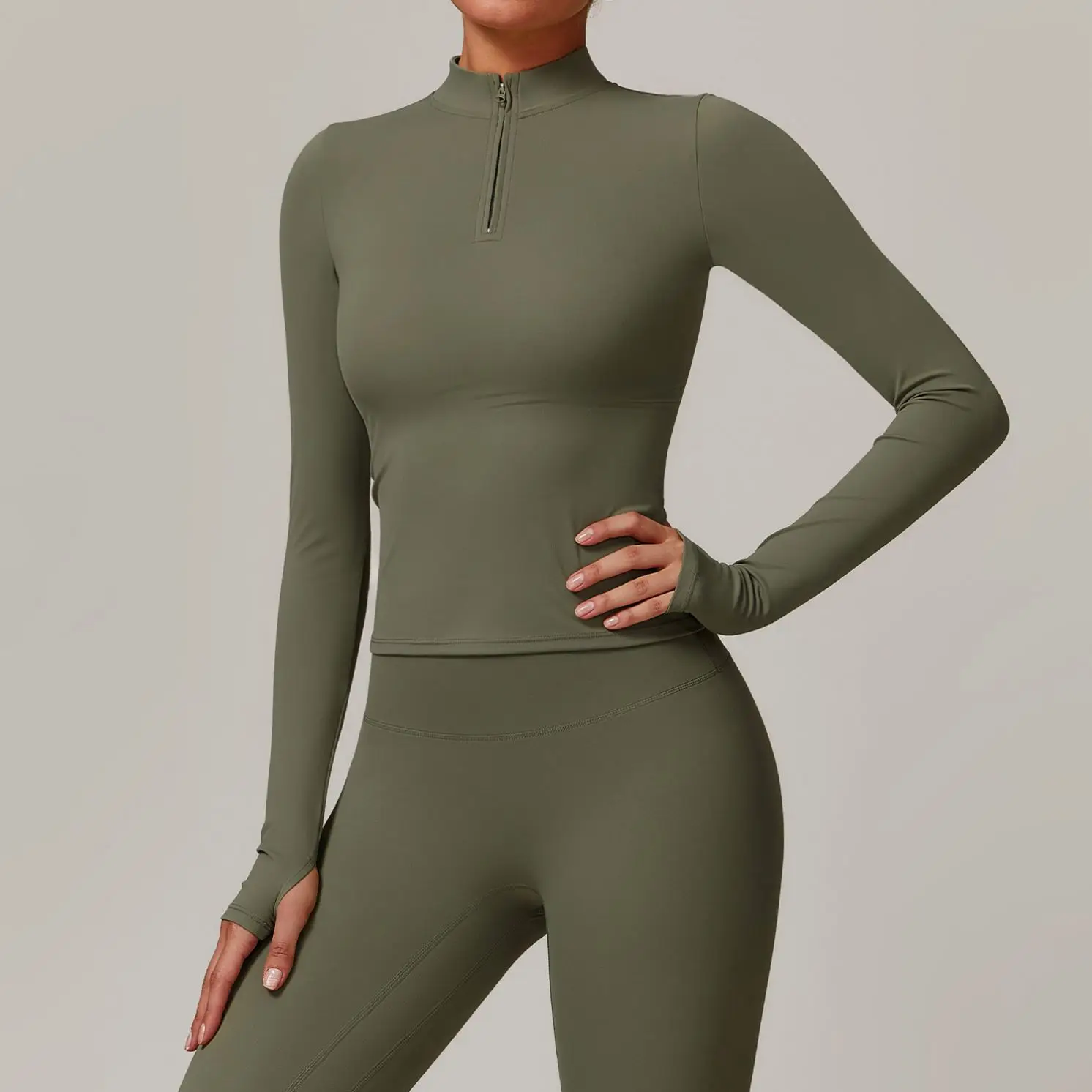 YISHENHON Custom Women's Yoga Jackets Thumb Hole Zipper Lightweight Fitness Sports Jackets Workout Yoga Clothing With Pocket