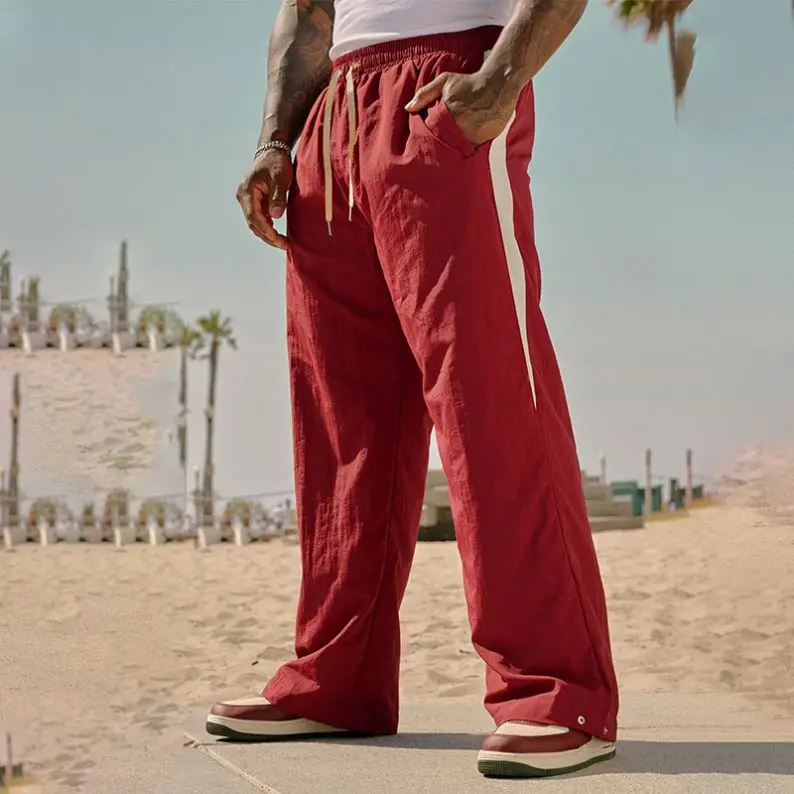 Men's Exercise Casual Pants Cotton Linen Breathable Loose Straight Mopping Pants