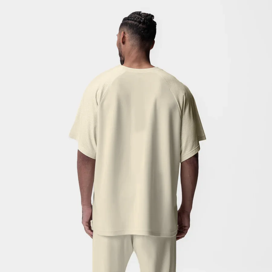 Summer New Men's Sports Short-Sleeved T-shirt Waffle Stitching Mesh Quick-Drying Breathable