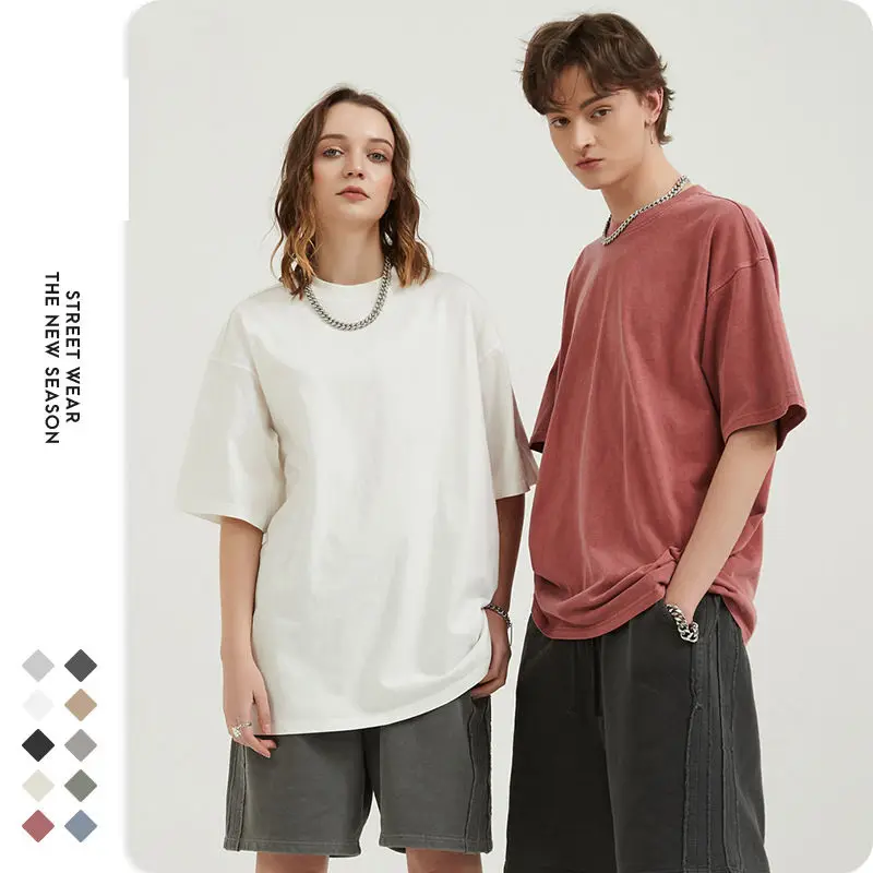Spring Summer New Heavyweight 100% Cotton Loose Vintage t Shirt Custom Men Vintage Oversized Tshirt
