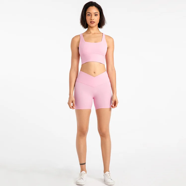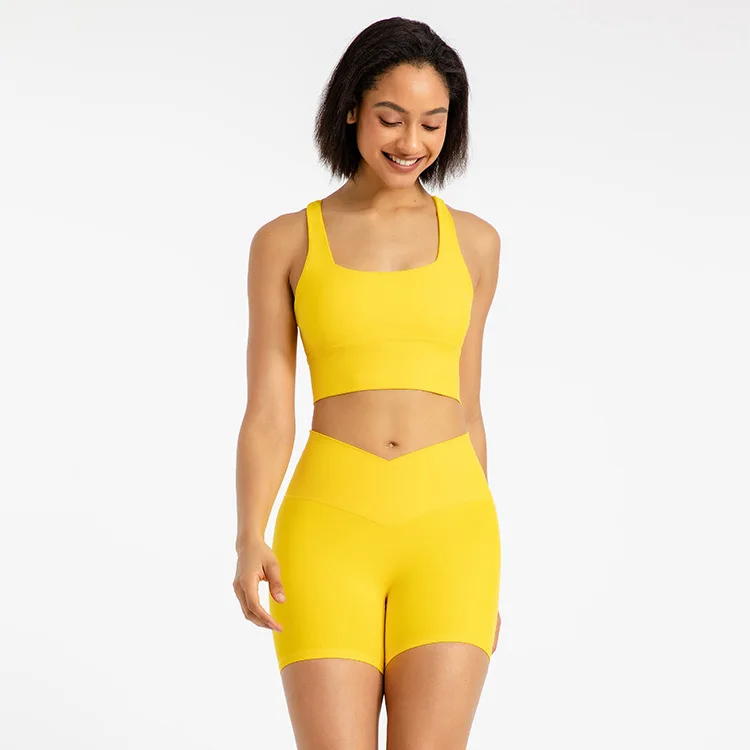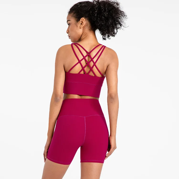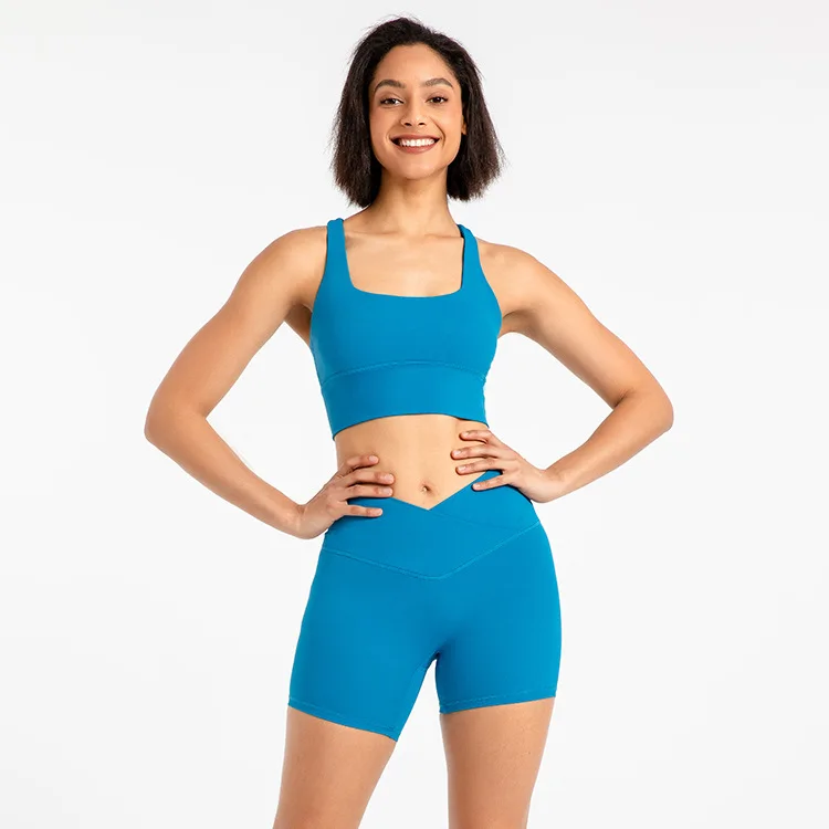 New Multi Colors Sportswear Workout Clothing Cross Back Bra and V Waist Shorts Gym Fitness Yoga Set