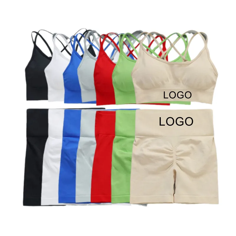 New Seamless Sportswear Bra Booty Shorts Scrunch Push up Women's Shorts Gym Fitness Yoga Set
