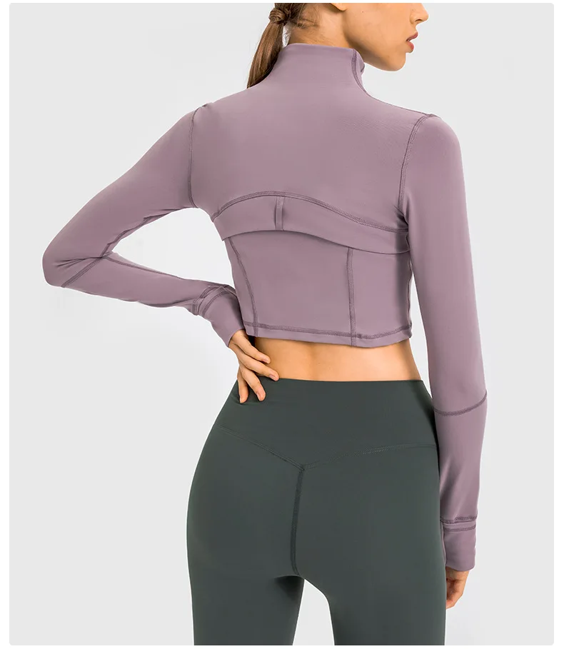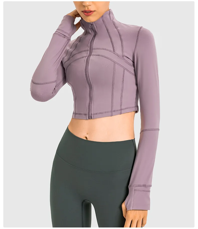 YISHENHON Custom Women's Yoga Jackets Thumb Hole Zipper Lightweight Fitness Sports Jackets Workout Yoga Clothing With Pocket