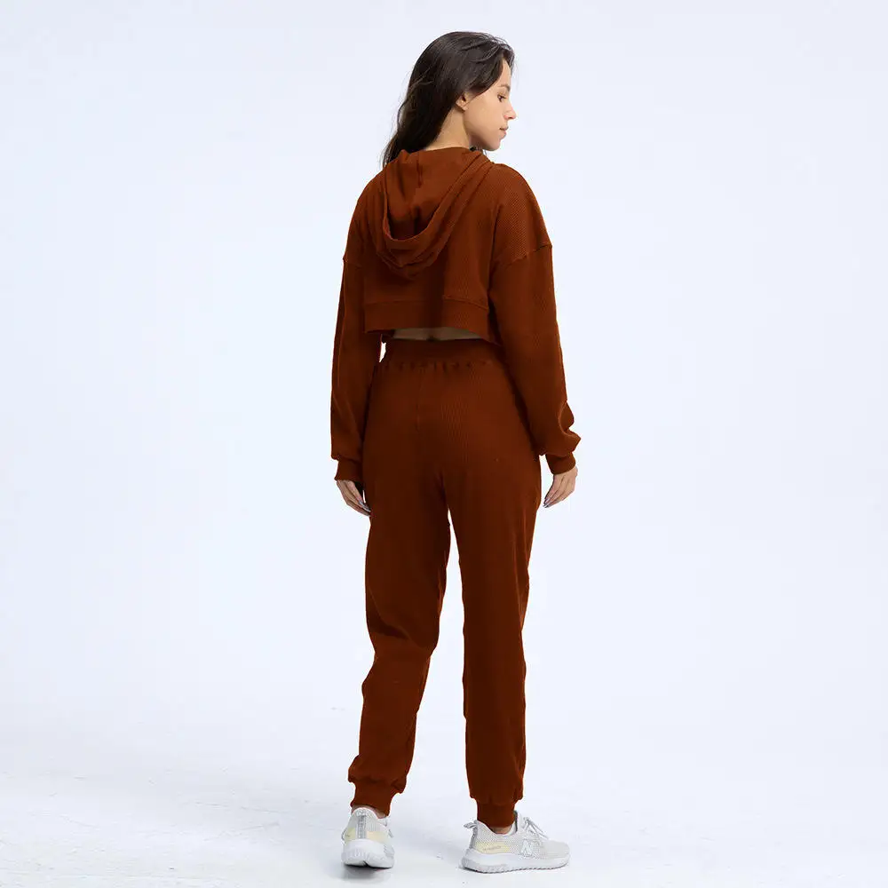 Custom logo Gyms Cropped Tops Womans Sweat Suits Oversize Hoodie and Women Pants Set Workout Set