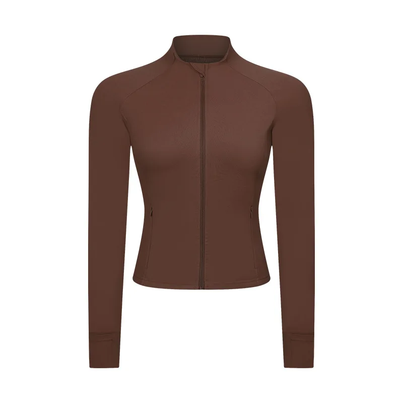 Hot Sale Fashion Newest Design Women Fitness Sports Long Sleeve Side Pocket Zipper Apparel Gym Stand-up Collar Jacket