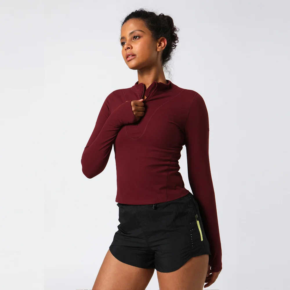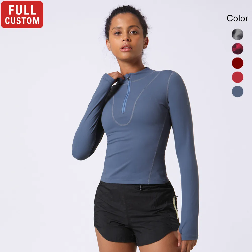 New Design Fitness Sports Workout Wear Warm Yoga Long Sleeve Zip up Top Custom Women Shirt