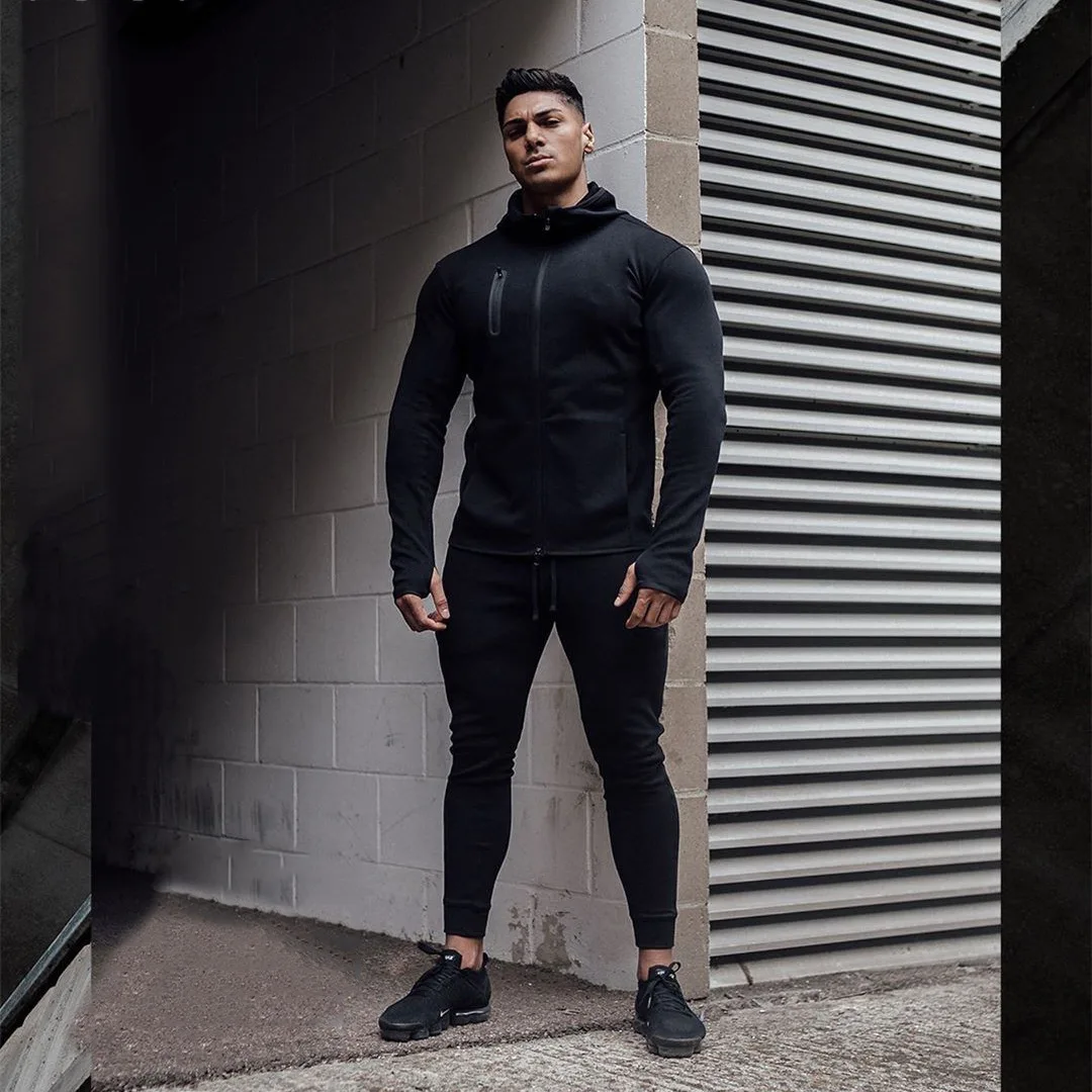 New Fashion Full Zipper Hoodie and Joggers Suit Men Cotton and Polyester Zip Sweatshirts Suit Zip up Hoodie Custom
