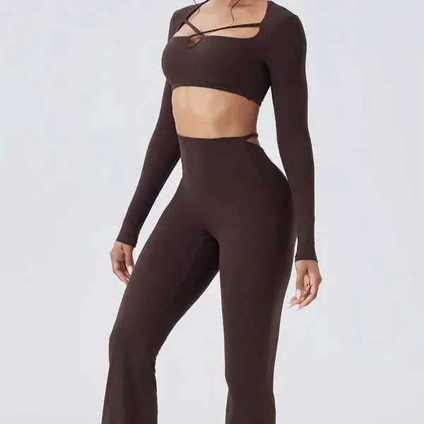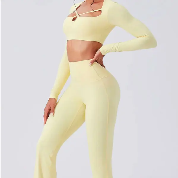 YISHENHON High Quality Gym Yoga Flare Leggings Hot Selling High-Waisted Wide Leg Pants for Women Solid Casual Sport Running