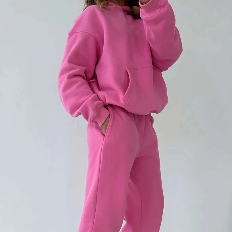OEM winter 2026 women sports outfit hoodies tracksuits Heavyweight 100%cotton Lounge Wear vintage Thick Pullover for ladies