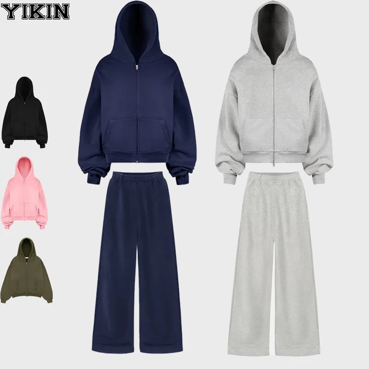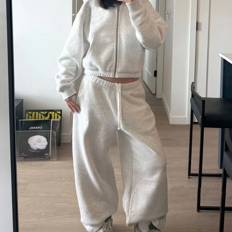 High Quality Sports Outfit Unisex Zipper Hoodies Tracksuits 2pcs Activewear Oversized Winter Fleece Athleisure Set for Women