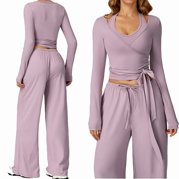 Wholesale 2026 Women Sports Outfit Yoga Tracksuit 3pcs Gym Fitness Workout Blank Puff Printed Faction Activewear for Ladies
