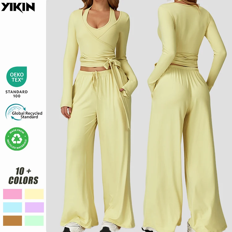 YISHENHON High Quality Gym Yoga Flare Leggings Hot Selling High-Waisted Wide Leg Pants for Women Solid Casual Sport Running
