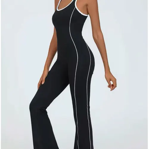 Oem High Quality 2026 New Trendy Sport Wear Bodysuit Backless One Piece Solid Color Workout Fitness Jumpsuit for Ladies