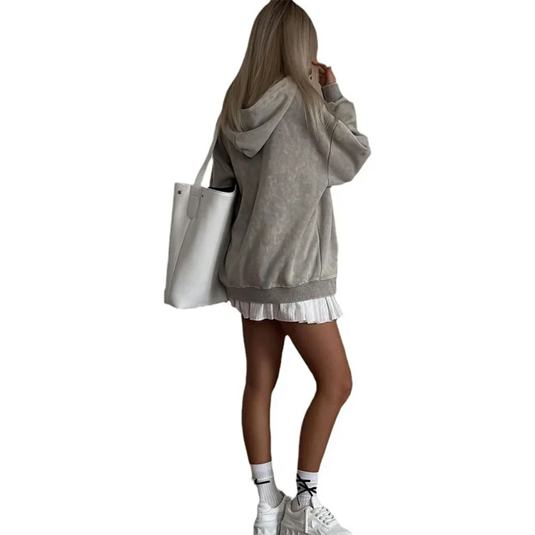 OEM New Activewear Sports Outfit Women Long Sleeve Thick Pullover Winter Vintage Acid Wash Puff Printed Sweatshirt